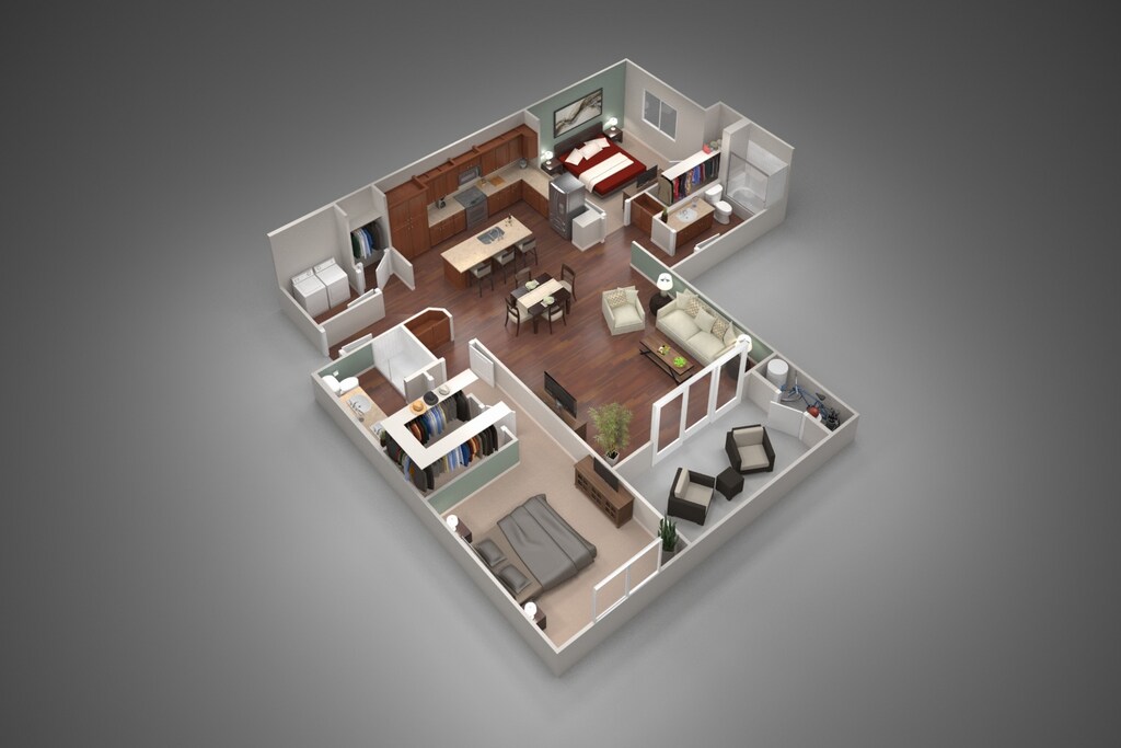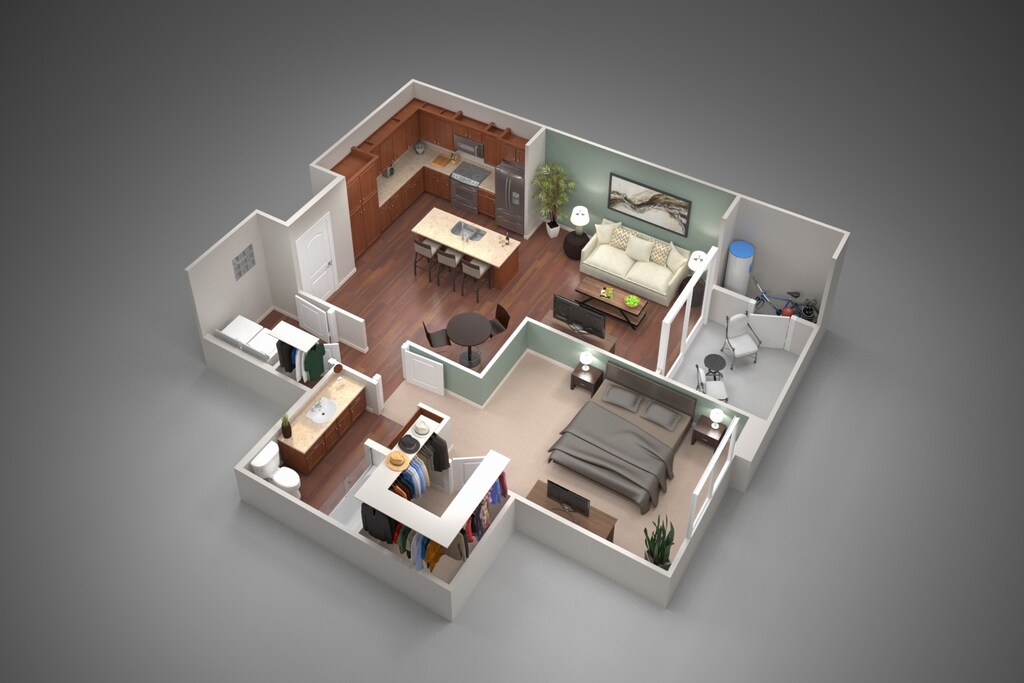 1 Dormitorio, 1 Baño, 988 pies²Disponible AhoraGalería del Modelo
