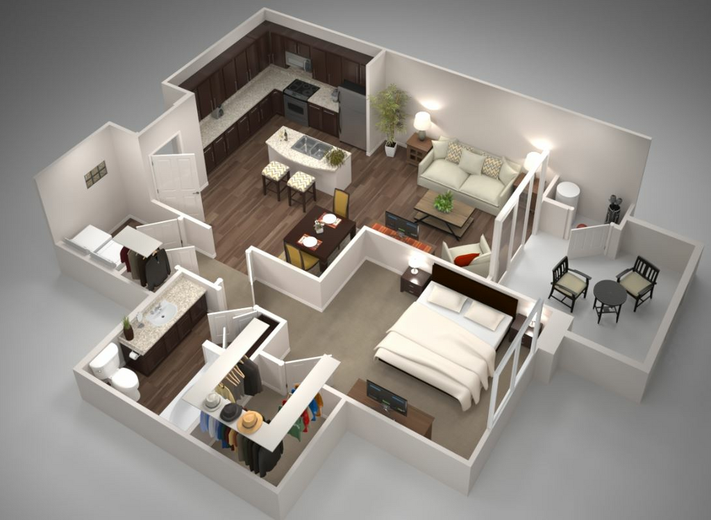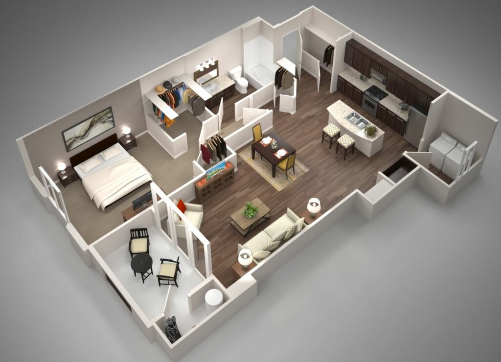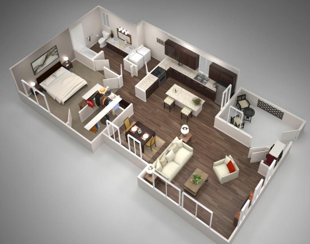 1 Dormitorio, 1 Baño, 986 pies²Disponible AhoraGalería del Modelo