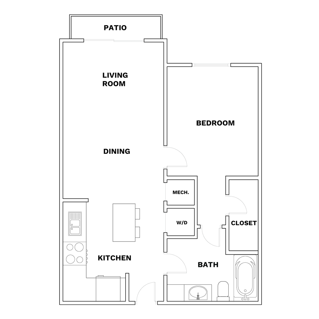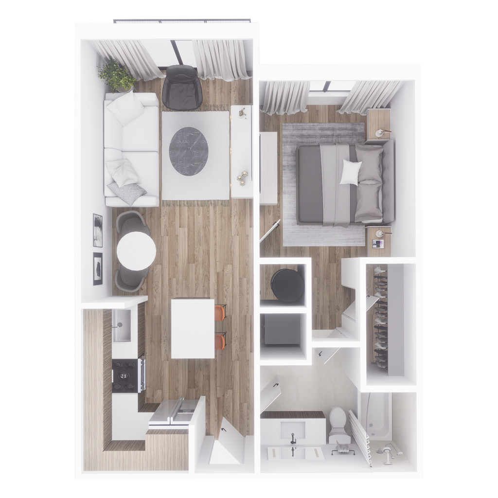 1 Dormitorio, 1 Baño, 750 pies²Disponible January 7, 2026Galería del Modelo