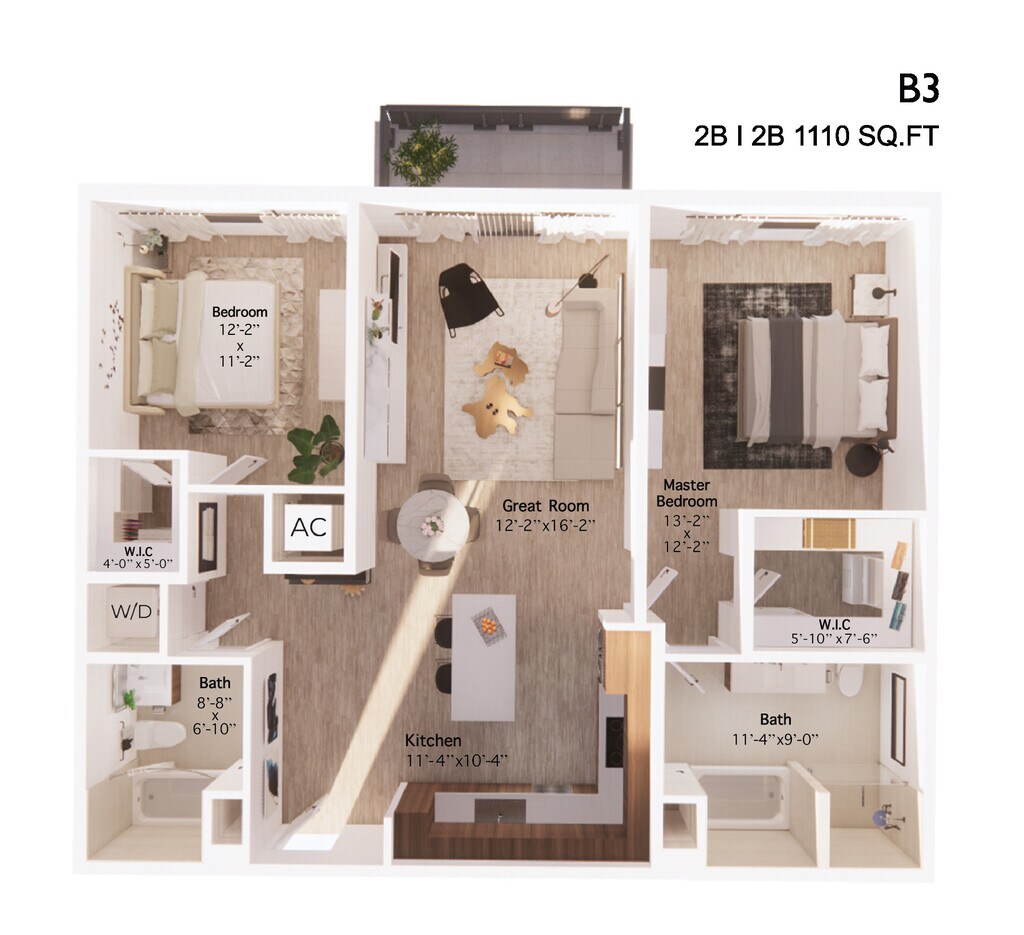 2 Dormitorios, 2 Baños, 1082 pies²Disponible AhoraGalería del Modelo