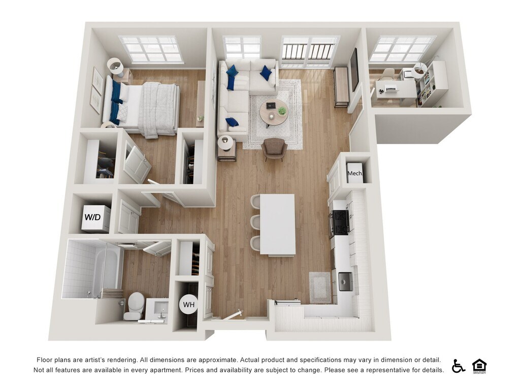 Modelo de apartamento: 1B DenLlame para Precios1 Dormitorio, 1 Baño, 895 sq ftNo Disponible![]()
