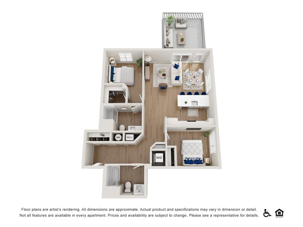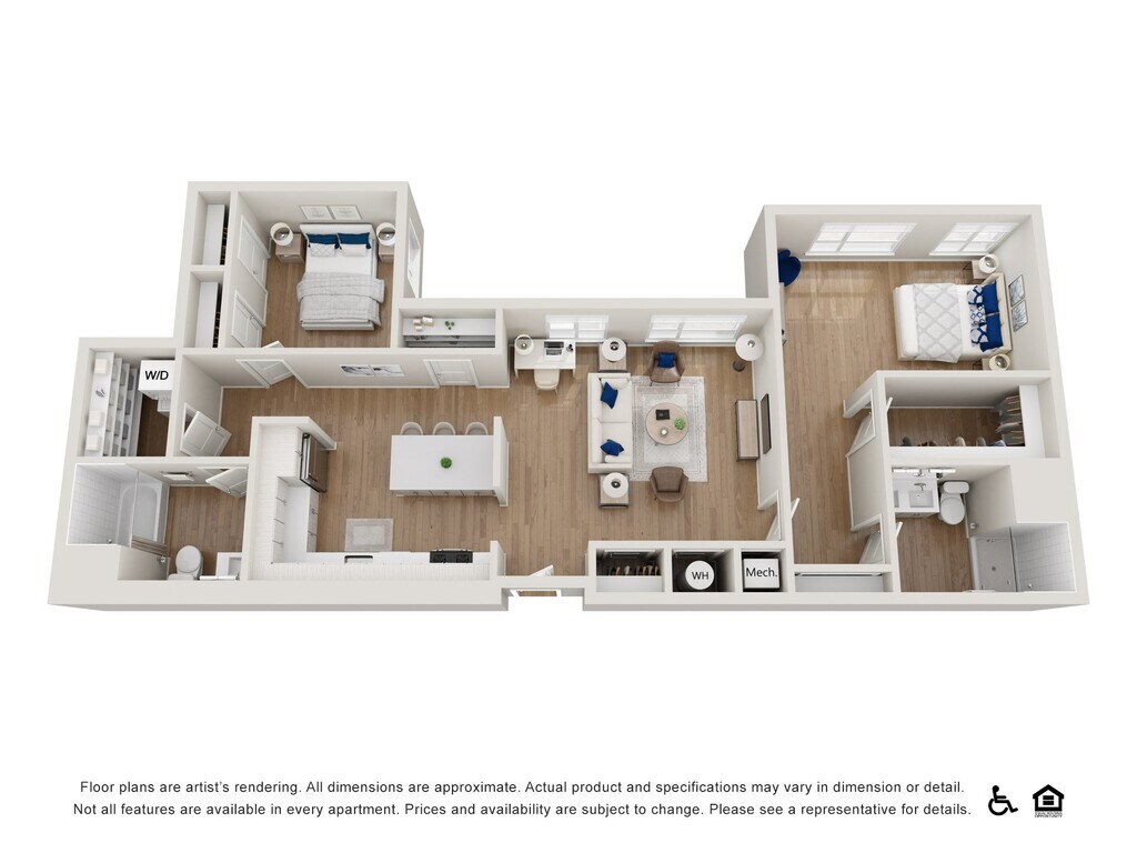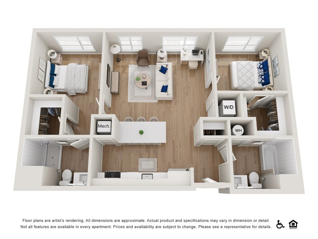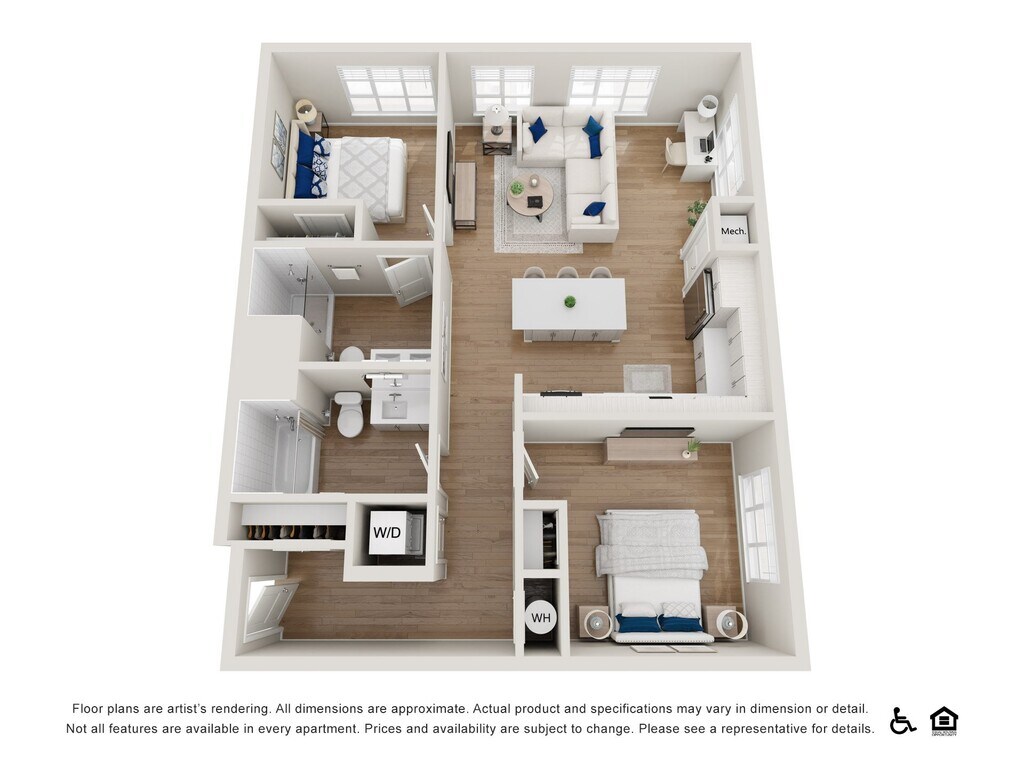Modelo de apartamento: 2FDesde $3,1862 Dormitorios, 2 Baños, 1053 sq ftDisponible Ahora![]()