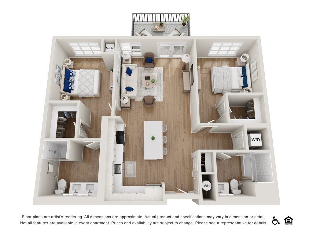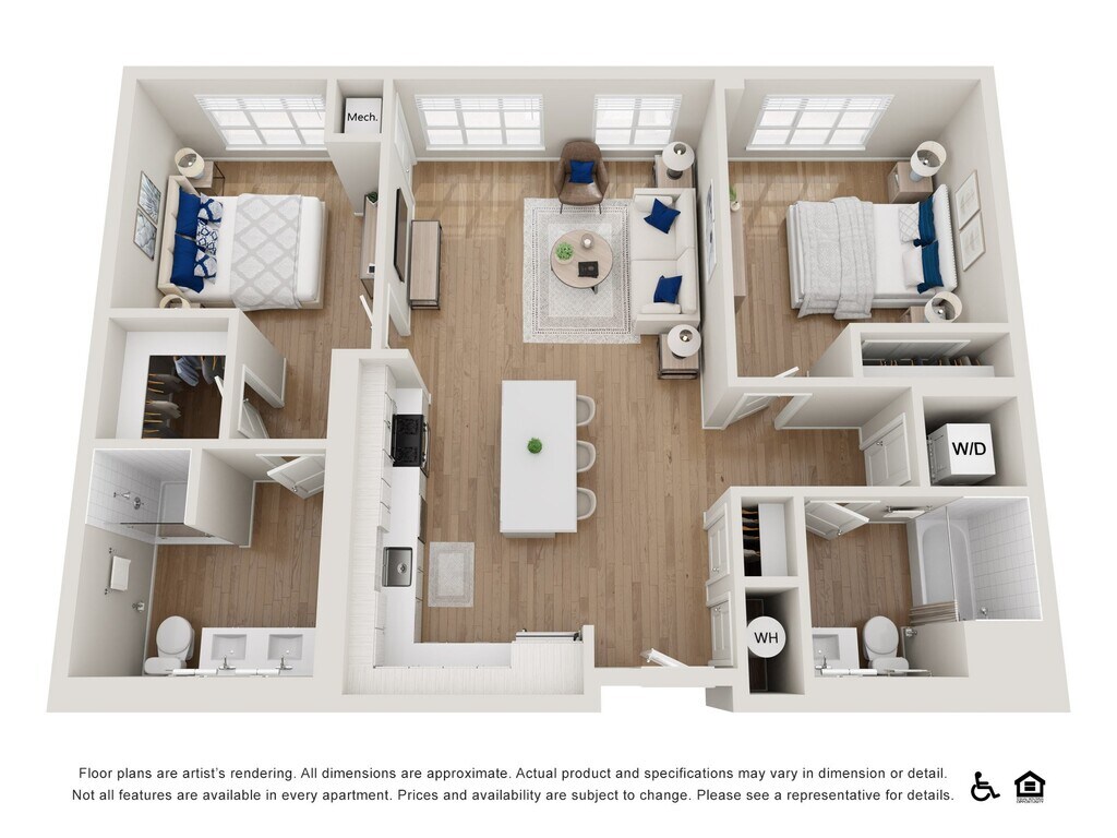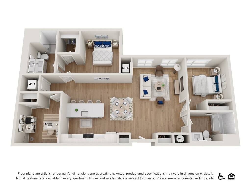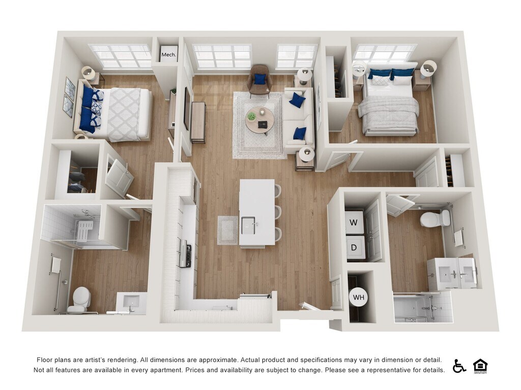 Modelo de apartamento: 2FDesde $3,1862 Dormitorios, 2 Baños, 1053 sq ftDisponible Ahora![]()