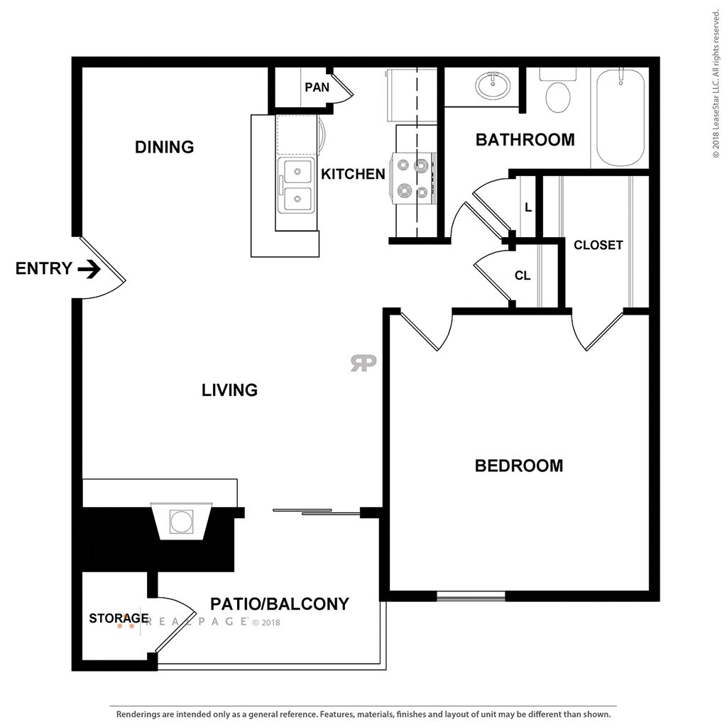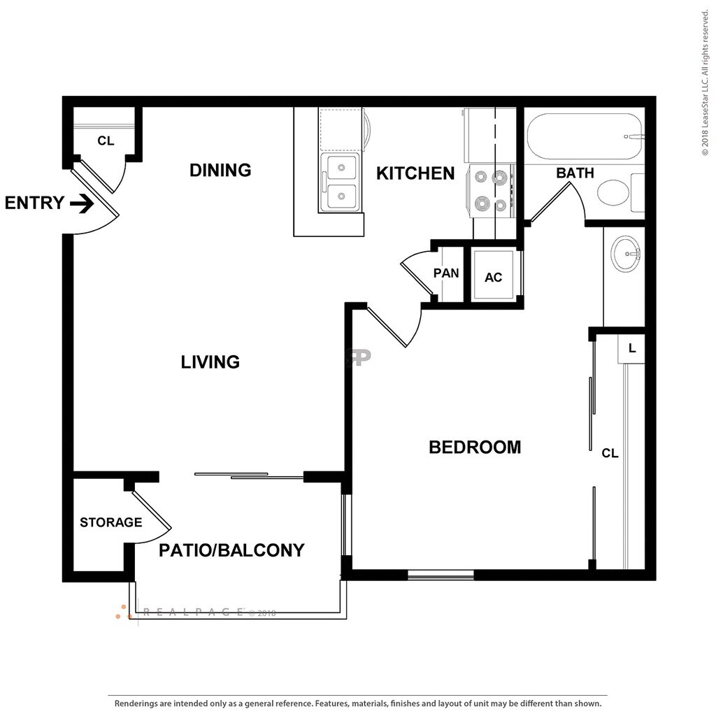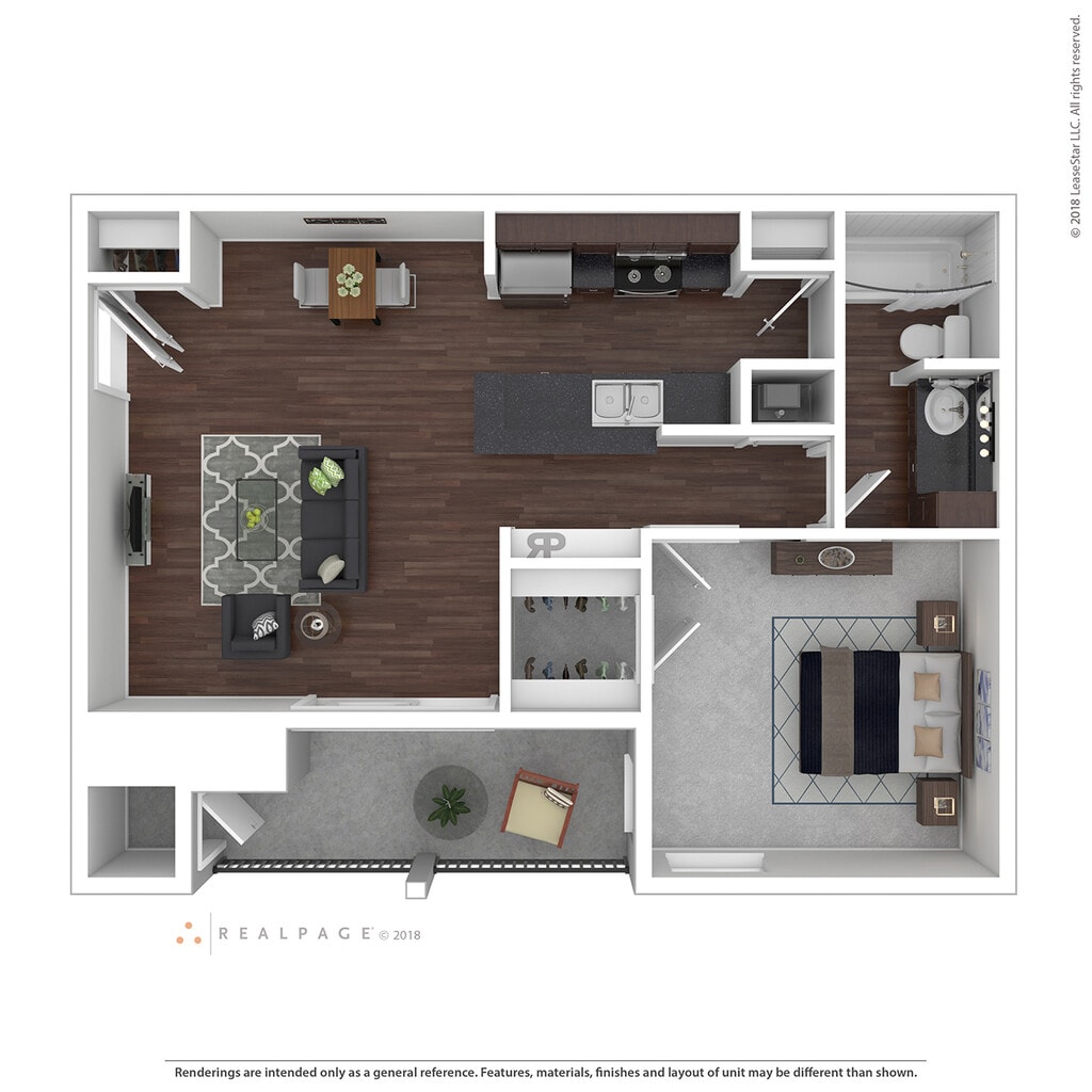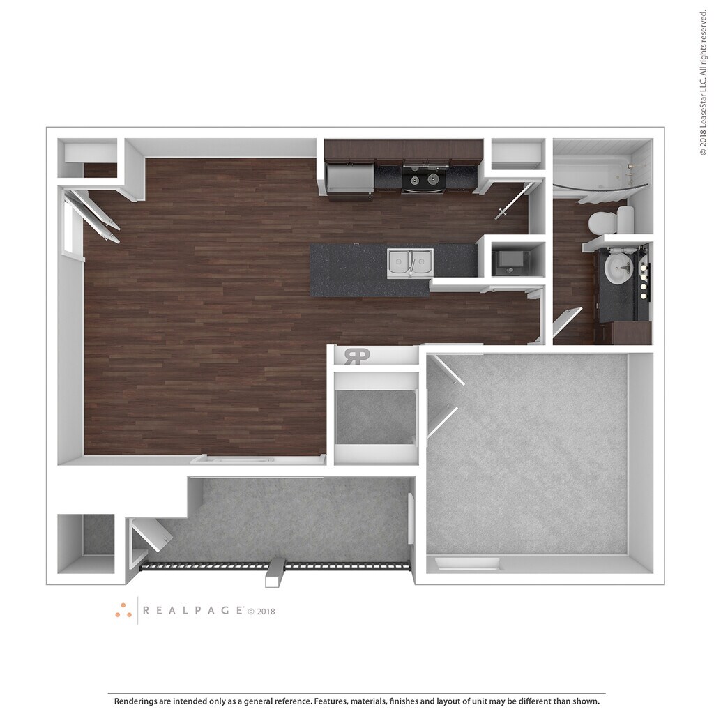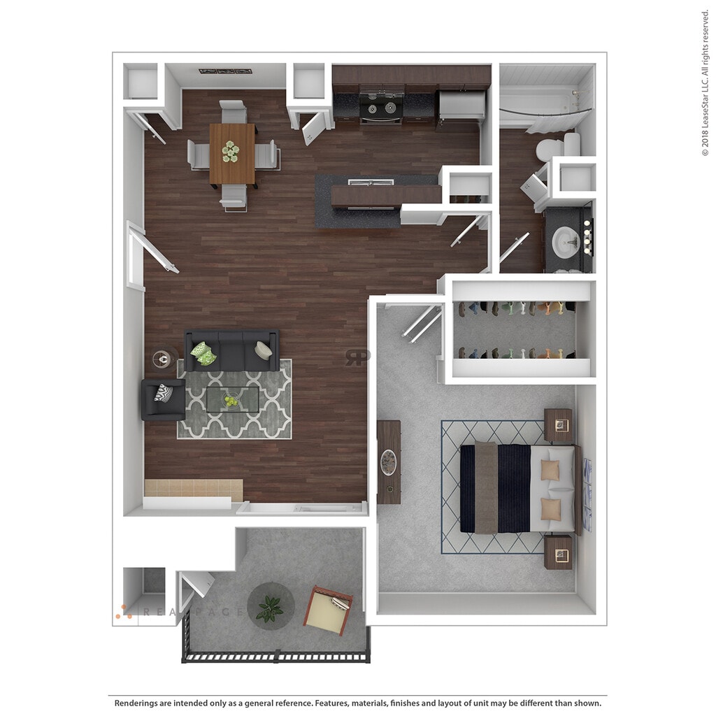 1 Dormitorio, 1 Baño, 617 pies²Disponible AhoraGalería del Modelo