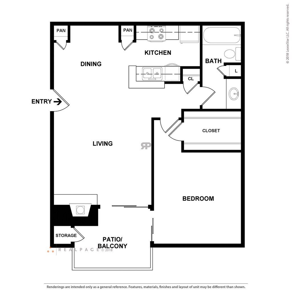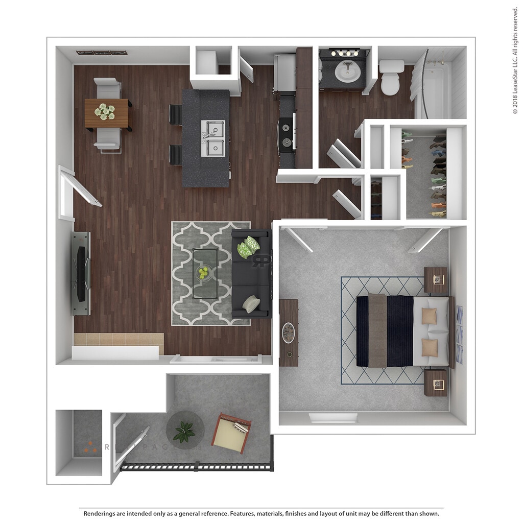 Modelo de apartamento: 1D - 1 Bedroom (Aruba D)Desde $7791 Dormitorio, 1 Baño, 603 sq ftDisponible Ahora![]()