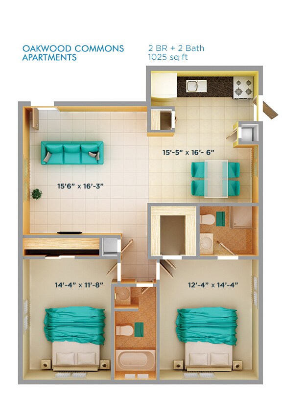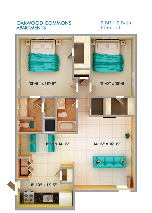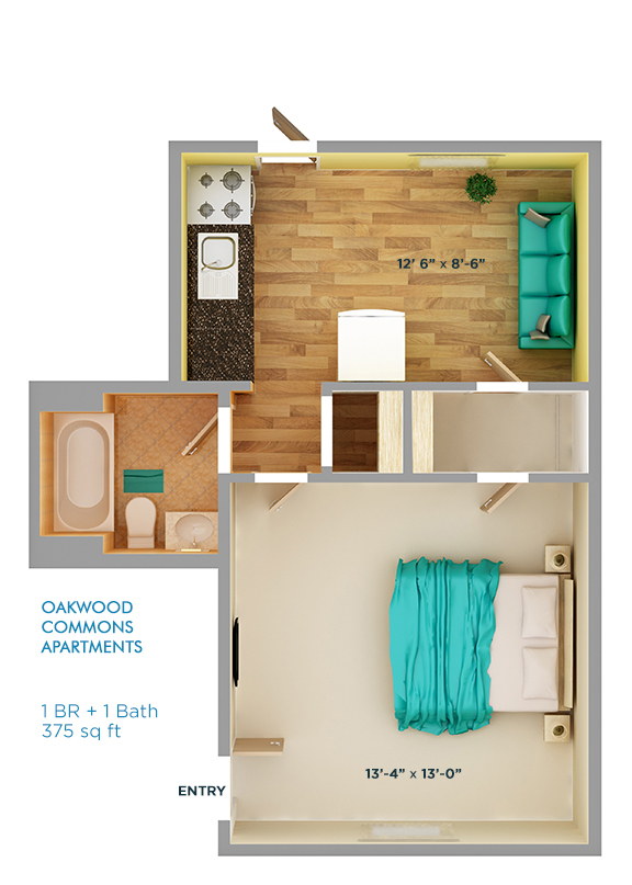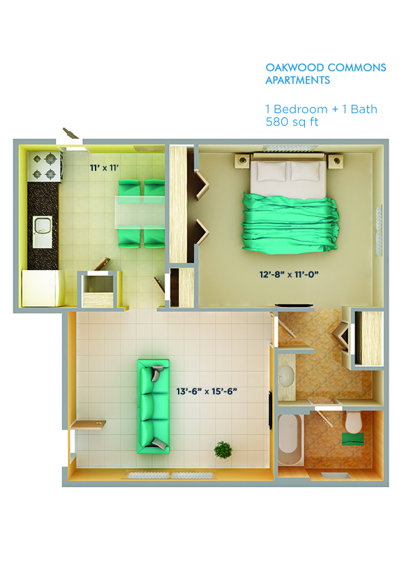 Oakwood Commons Studio - Plano 1 1 Dormitorio