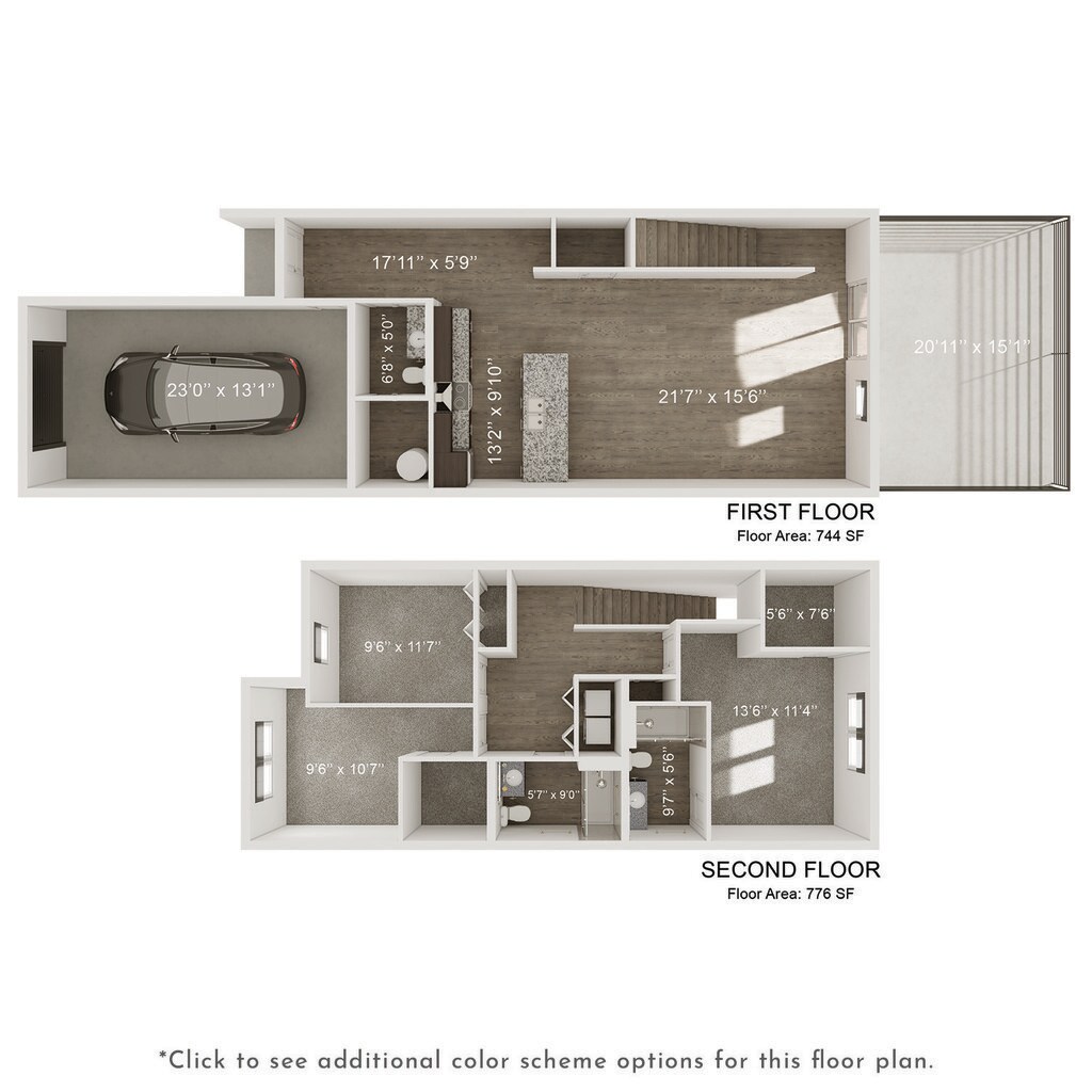2 Dormitorios, 2.5 Baños, 1276 pies²Disponible AhoraGalería del Modelo