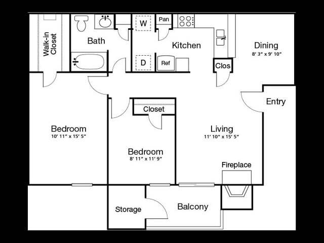 Modelo de apartamento: 1 Bed, 1 BathDesde $9911 Dormitorio, 1 Baño, 659 sq ftDisponible Ahora![]()