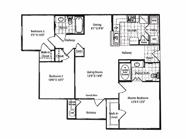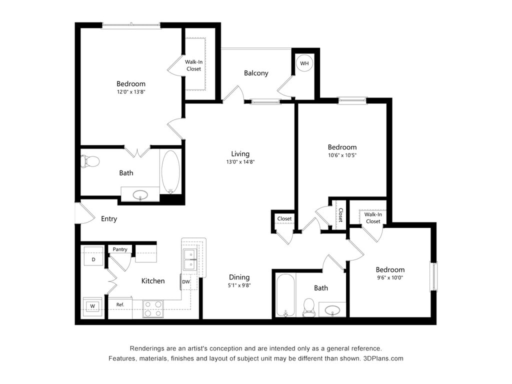 Modelo de apartamento: Three BedroomDesde $1,2473 Dormitorios, 2 Baños, 1109 sq ftDisponible December 1, 2025![]()