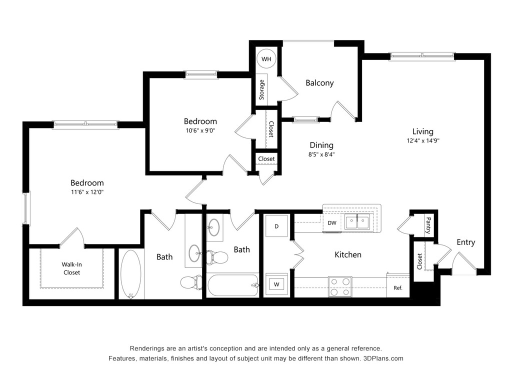 3 Dormitorios, 2 Baños, 1109 pies²Disponible Dec 1Galería del Modelo