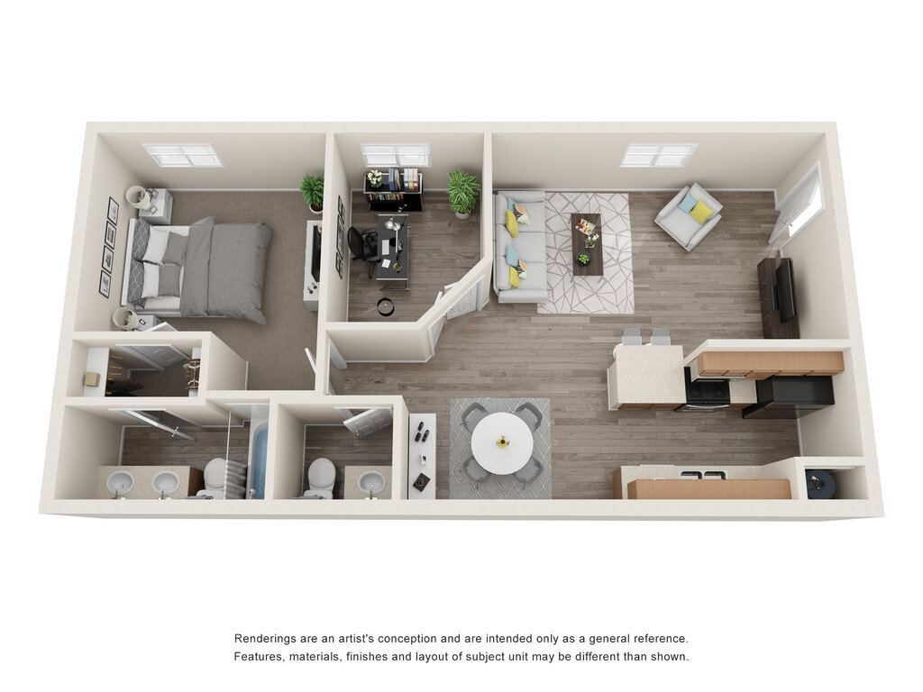 1 Dormitorio, 1.5 Baños, 660 pies²Disponible AhoraGalería del Modelo