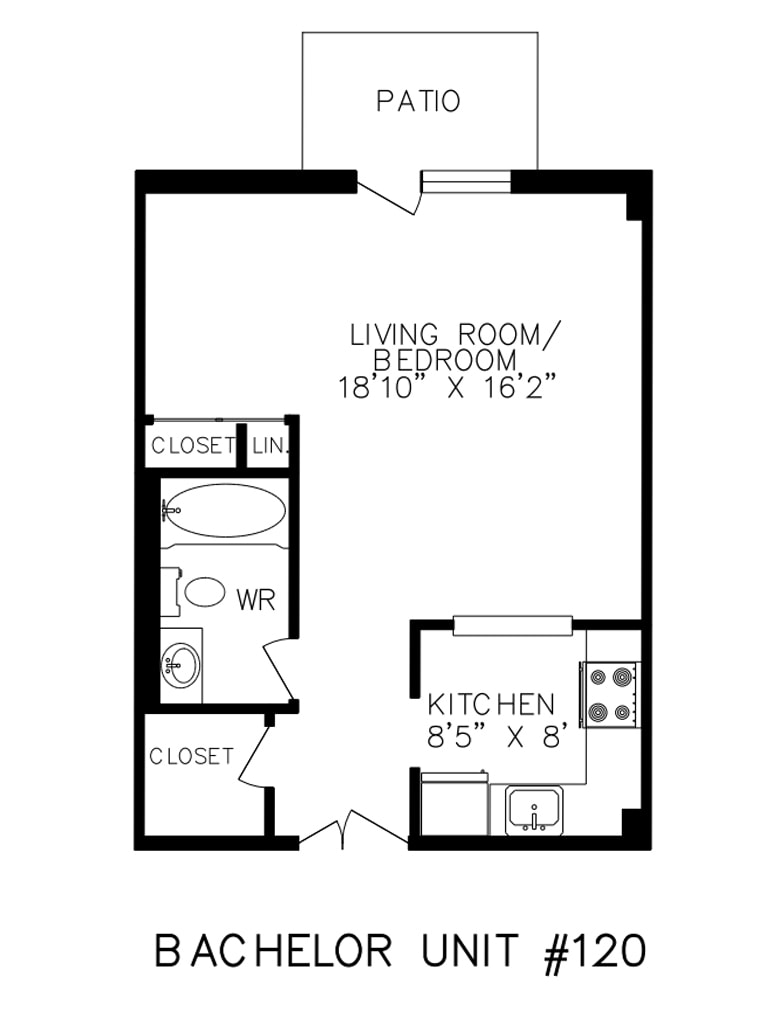 Modelo de apartamento: Bachelor$1,299Estudio, 1 Baño, 460 sq ftDisponible Ahora![]()