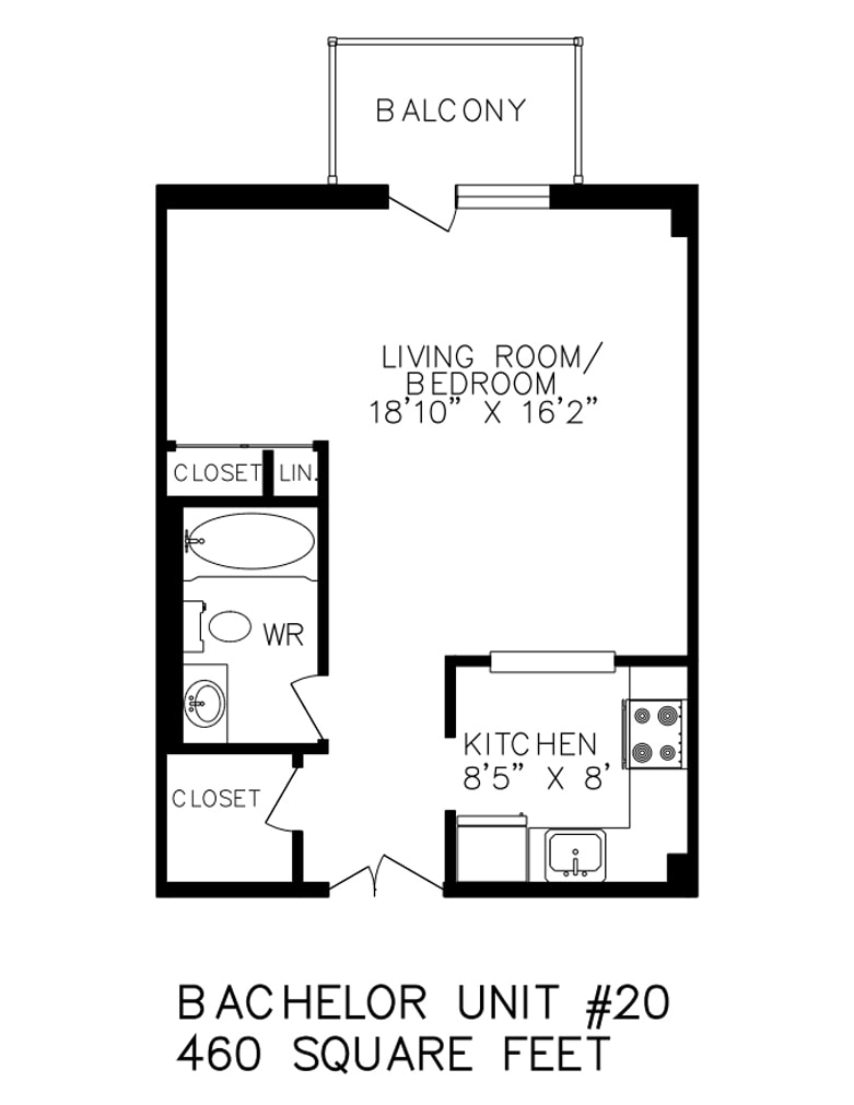 Estudio, 1 Baño, 460 pies²Disponible AhoraGalería del Modelo