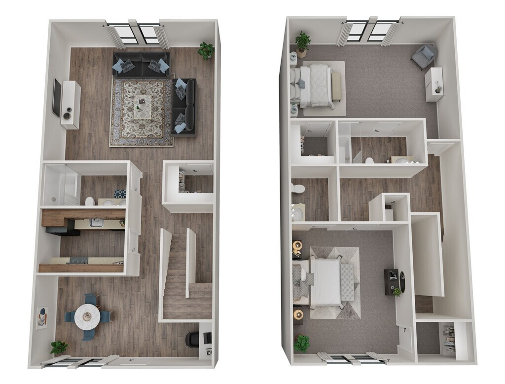 Modelo de apartamento: SA22UPRDesde $9602 Dormitorios, 2 Baños, 900 sq ftDisponible December 6, 2025![]()