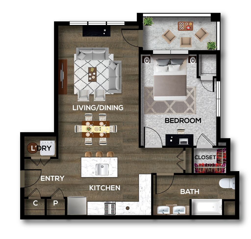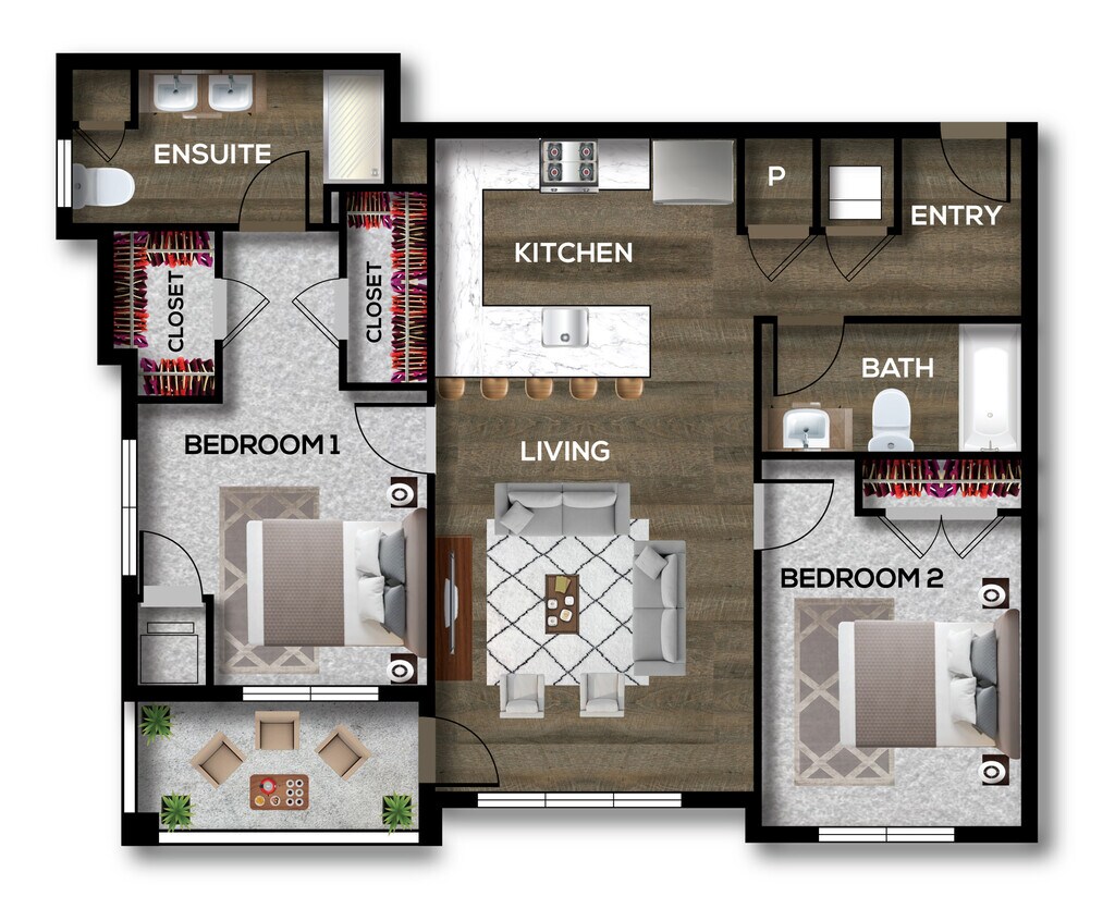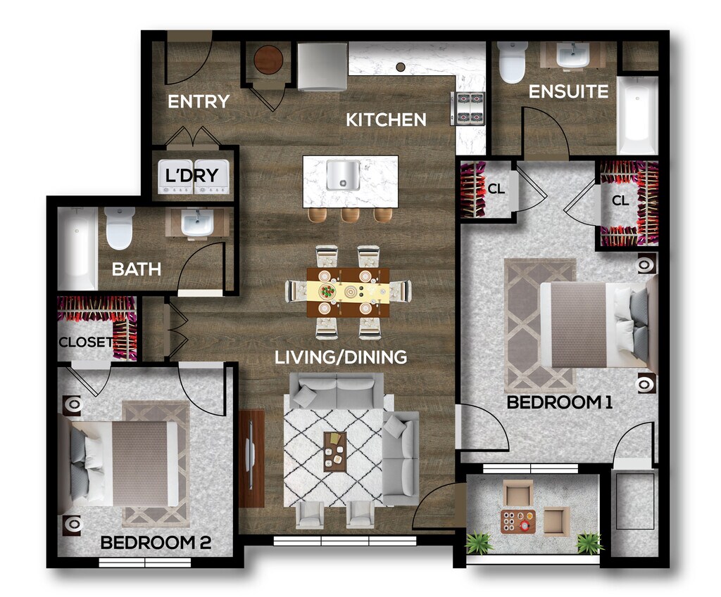 Modelo de apartamento: Sycamore$2,5502 Dormitorios, 2 Baños, 1245 sq ftNo Disponible![]() - Sycamore - Plano 1