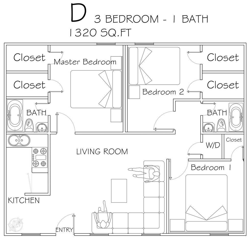 Modelo de apartamento: 1320 sfLlame para Precios3 Dormitorios, 2 Baños, 1320 sq ftNo Disponible![]()
