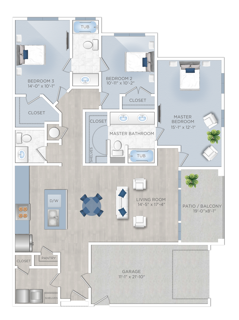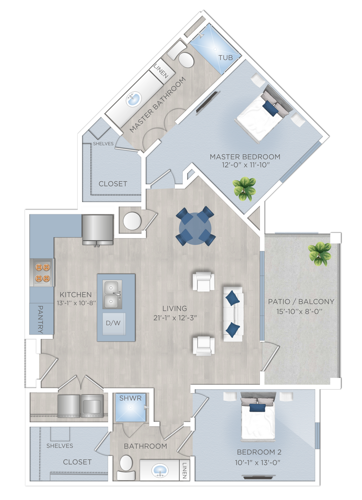 Modelo de apartamento: A3Desde $1,2981 Dormitorio, 1 Baño, 813 sq ftDisponible Ahora![]()