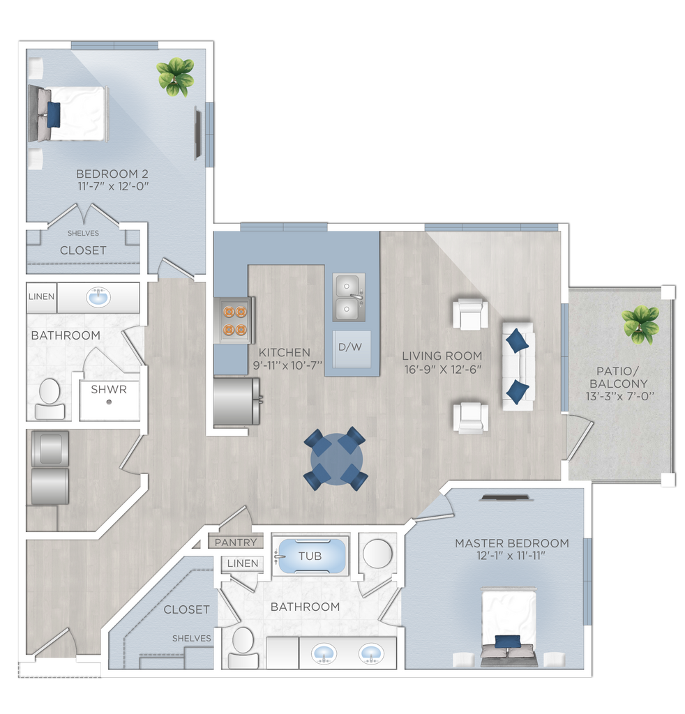 Modelo de apartamento: A2Desde $1,1861 Dormitorio, 1 Baño, 724 sq ftDisponible AhoraPlanosFotos![]()