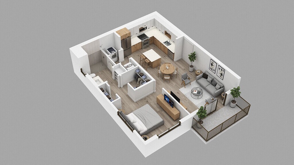 Estudio, 1 Baño, 597 pies²Disponible AhoraGalería del Modelo