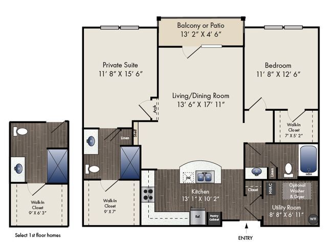 1 Dormitorio, 1 Baño, 1113 pies²El más grandeEsta opción tiene las unidades más grandes para este modeloGalería del Modelo