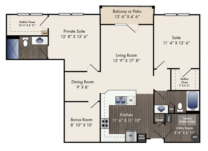 2 Dormitorios, 2 Baños, 1486 pies²El más grandeEsta opción tiene las unidades más grandes para este modeloGalería del Modelo