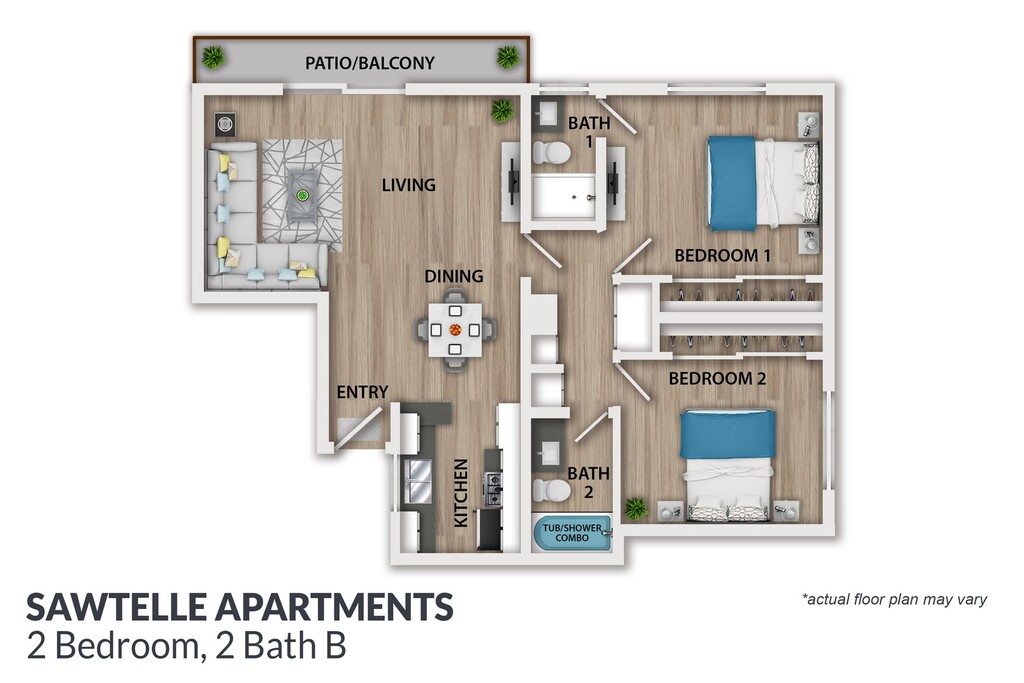 2 bedroom 2 bathroom - Plano 2 ![]()