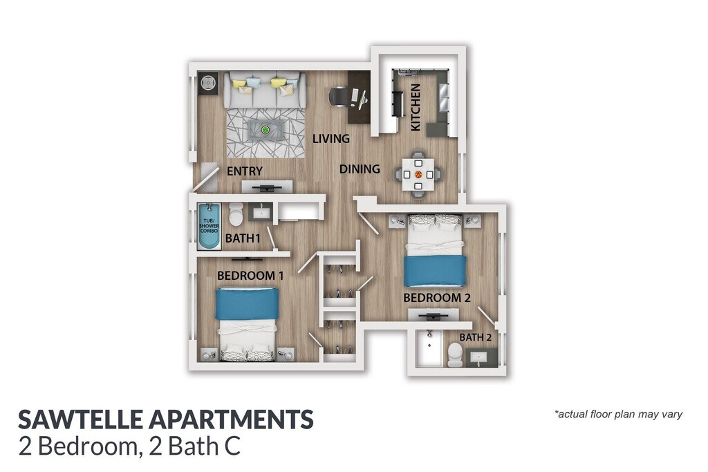 2 Dormitorios, 2 Baños, 850 pies²Galería del Modelo