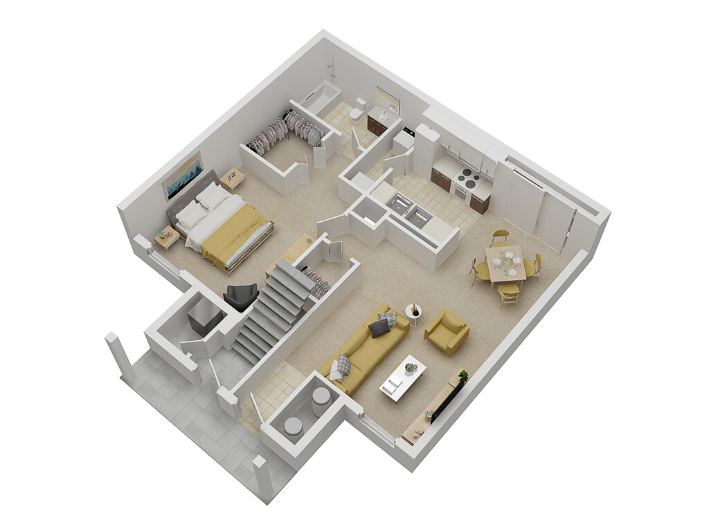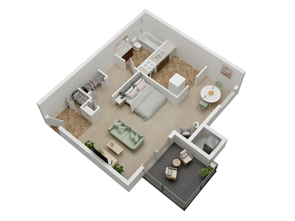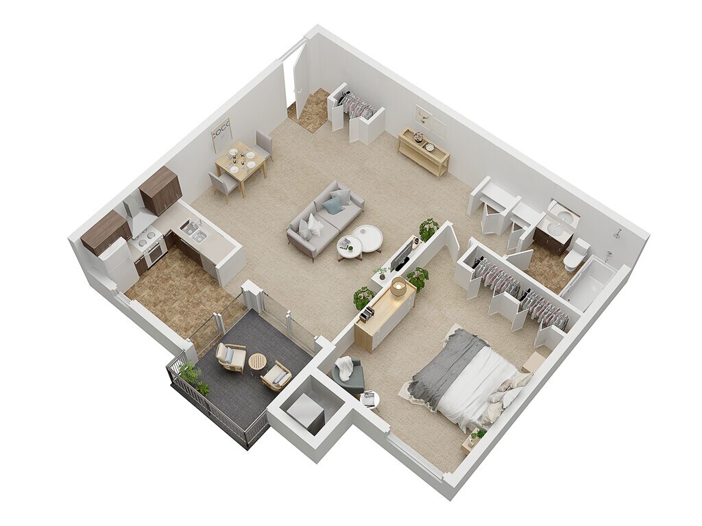 1 Dormitorio, 1 Baño, 729 pies²Disponible AhoraGalería del Modelo