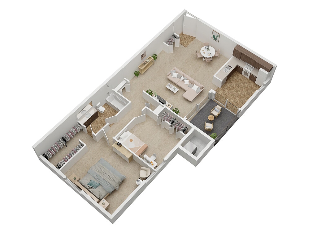 2 Dormitorios, 1 Baño, 950 pies²Disponible AhoraGalería del Modelo