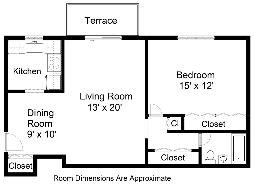 Modelo de apartamento: 1 BR w/ Terrace (2nd & 3rd Fl)$1,9951 Dormitorio, 1 Baño, 800 sq ftNo DisponiblePlanosFotos![]()