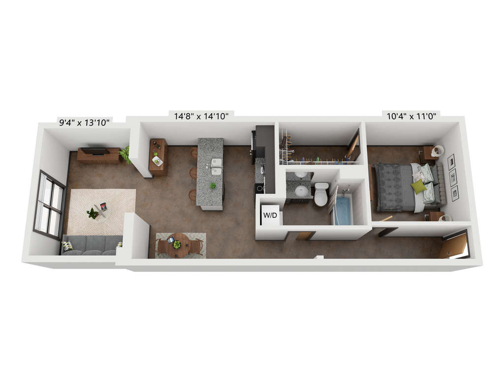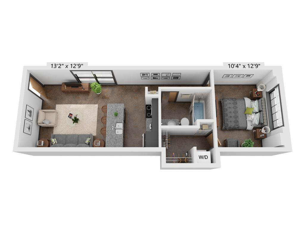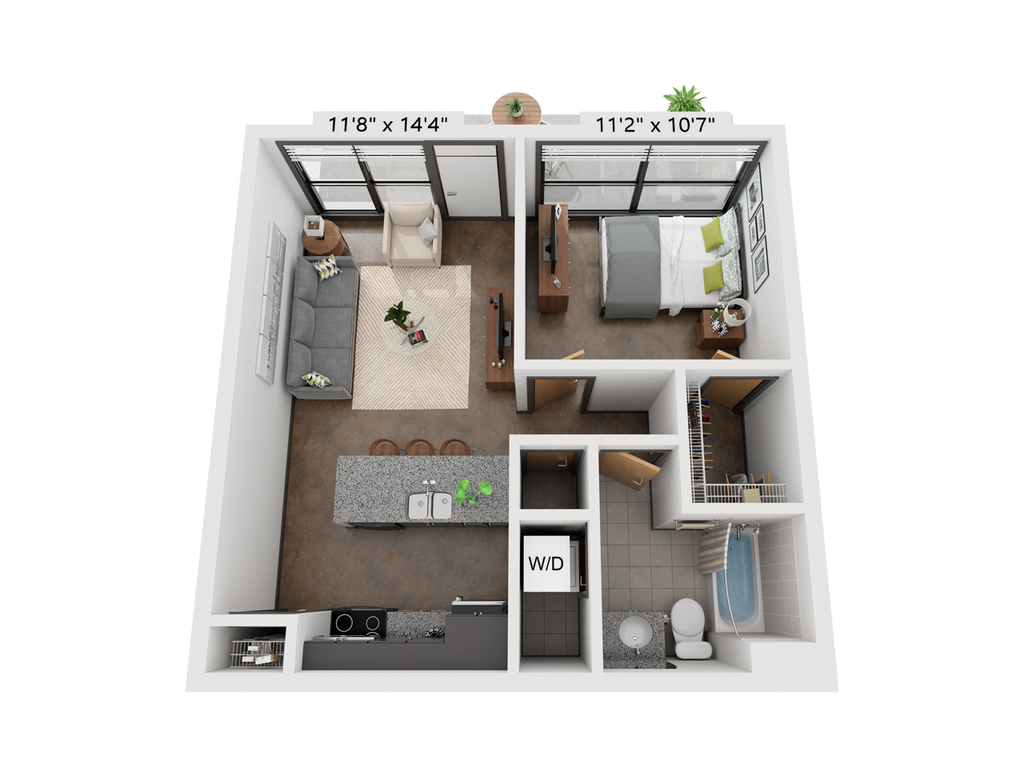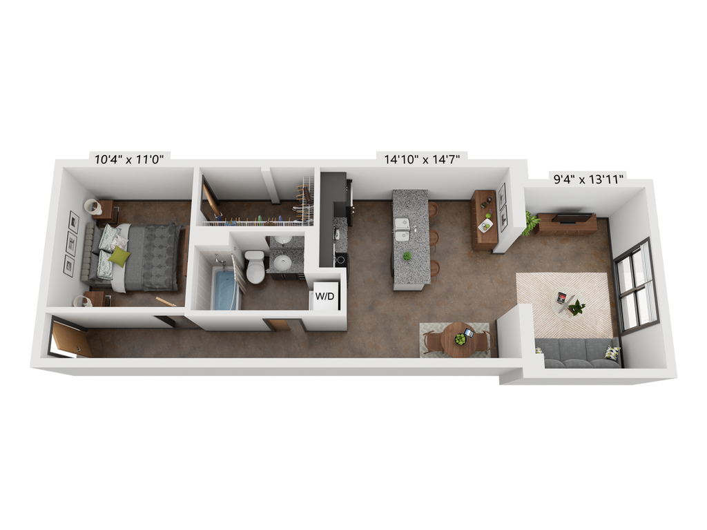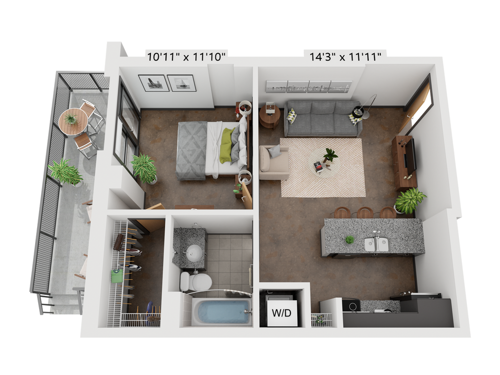 1 Dormitorio, 1 Baño, 569 pies²Disponible AhoraGalería del Modelo