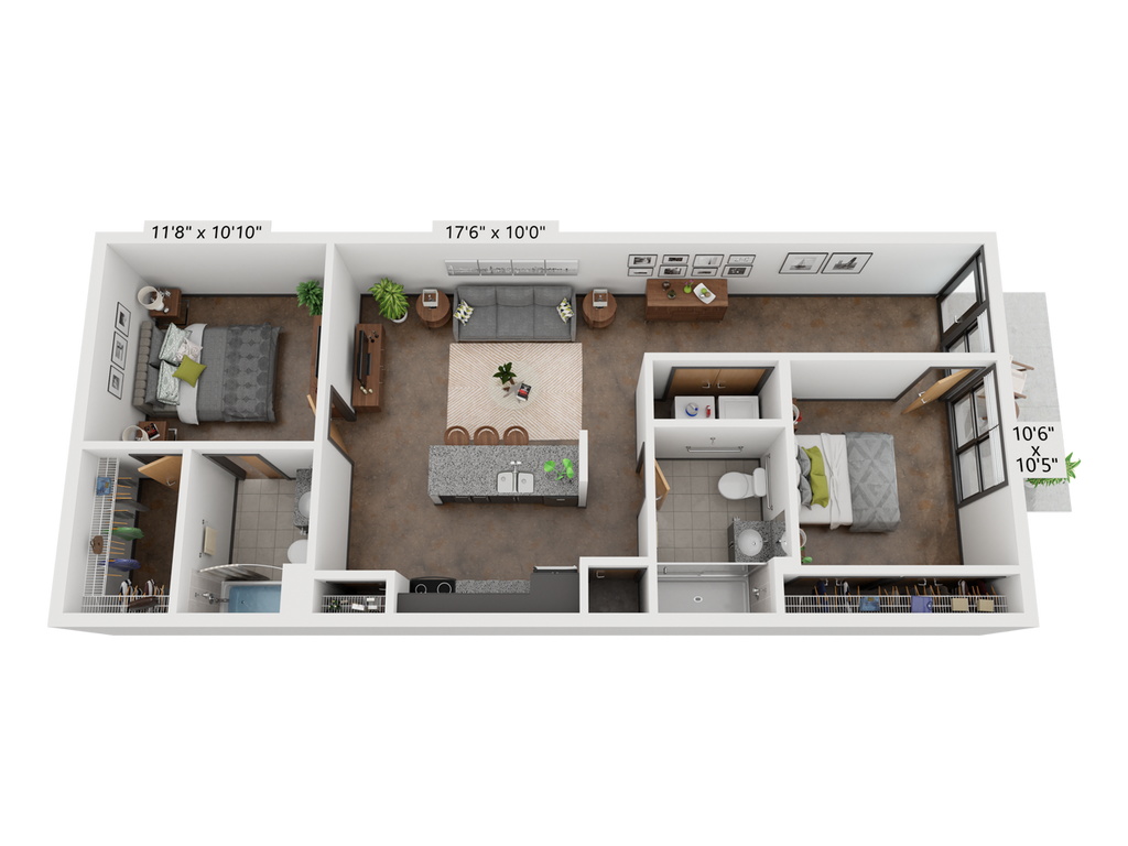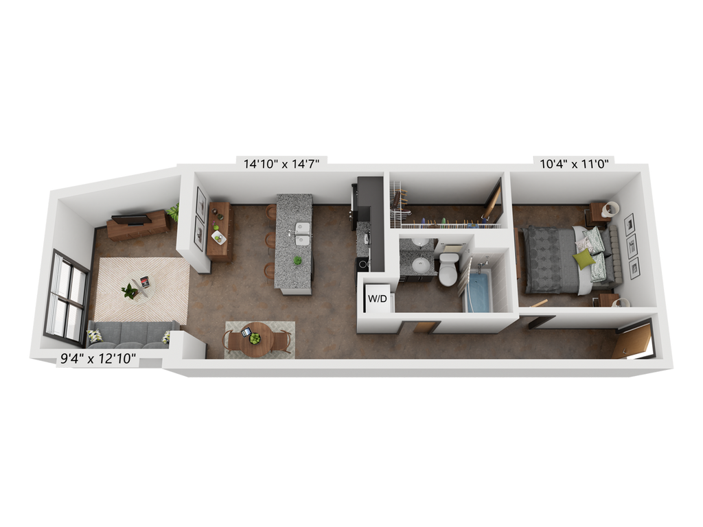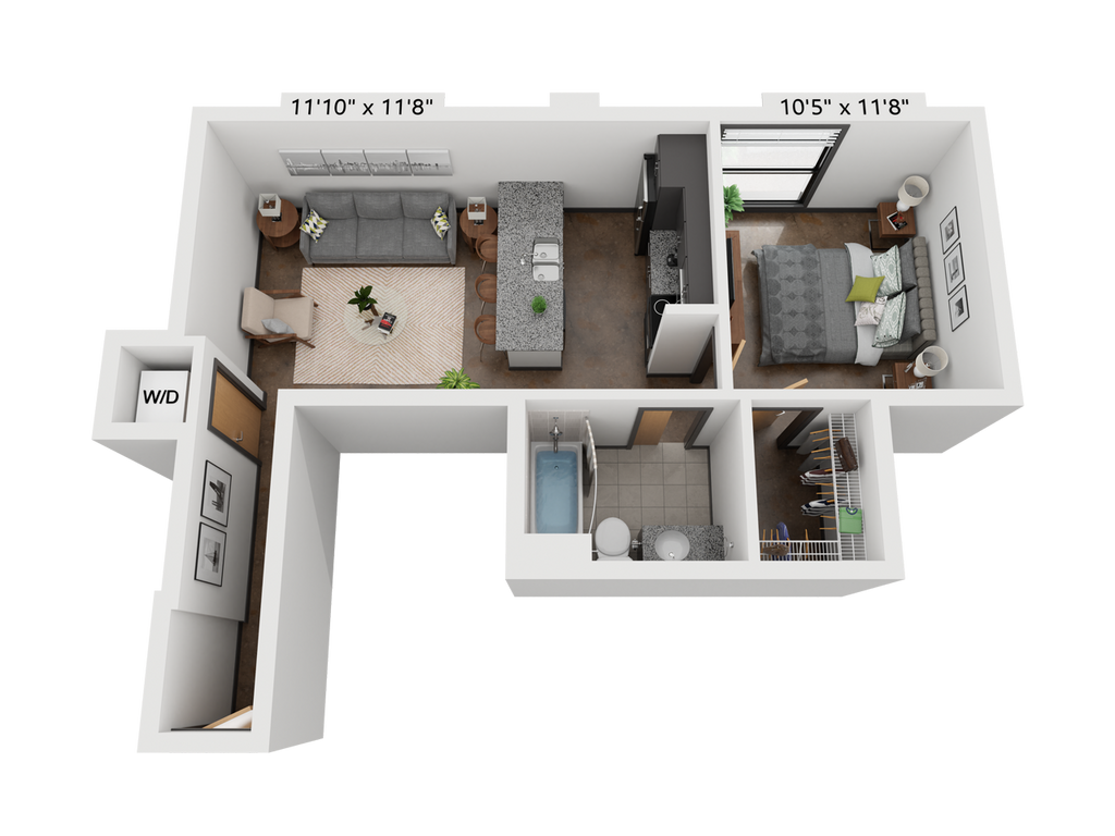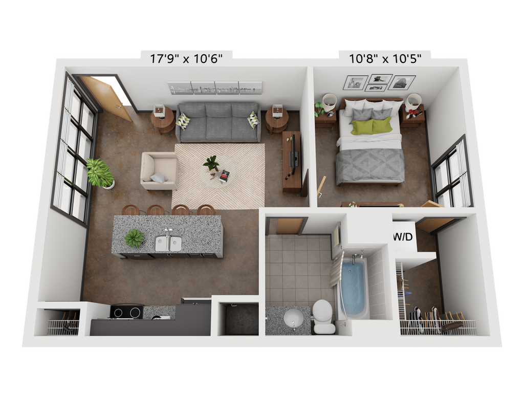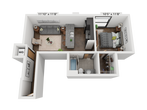 Modelo de apartamento: 1BR-1051 Dormitorio, 1 Baño, 687 sq ftDisponible Ahora![]()