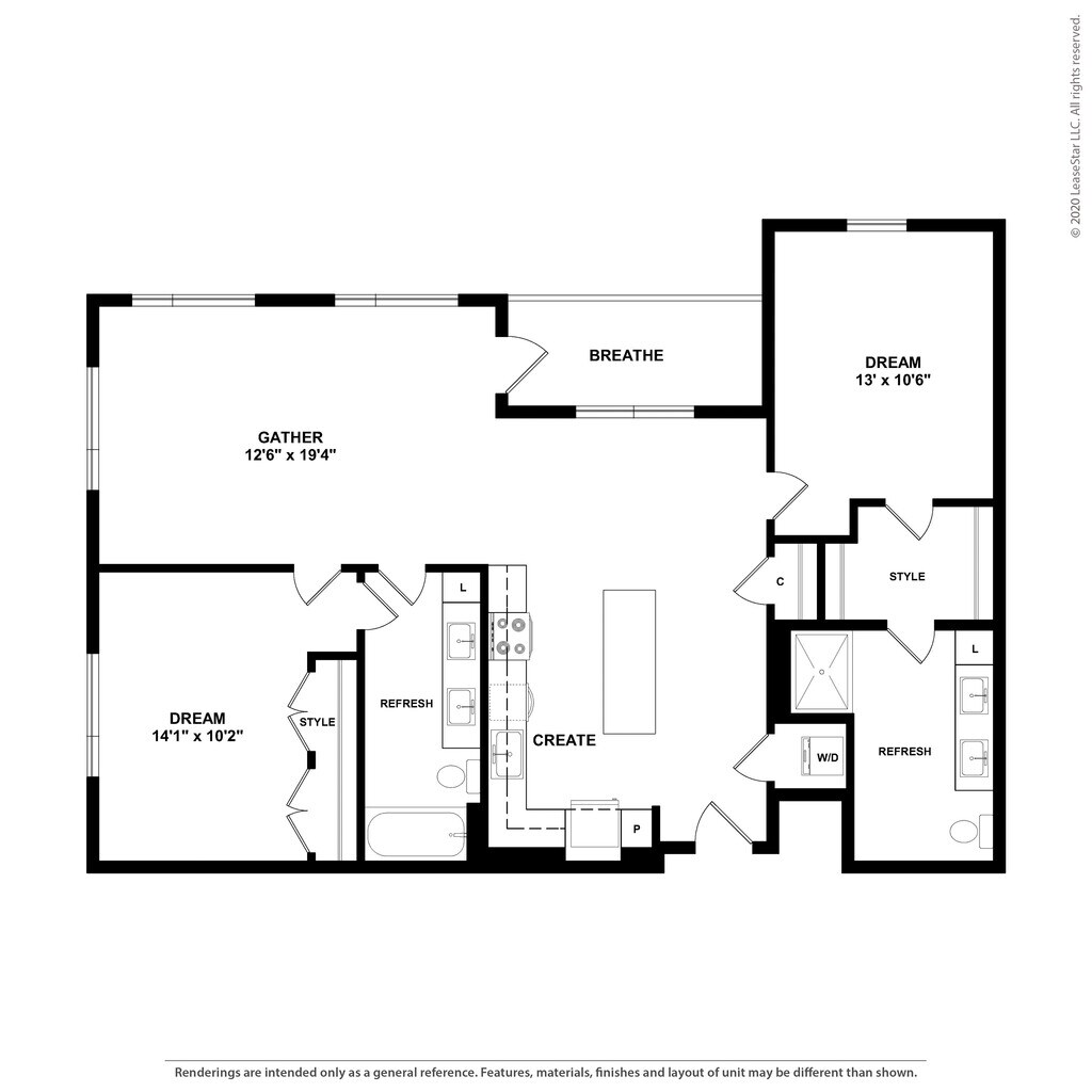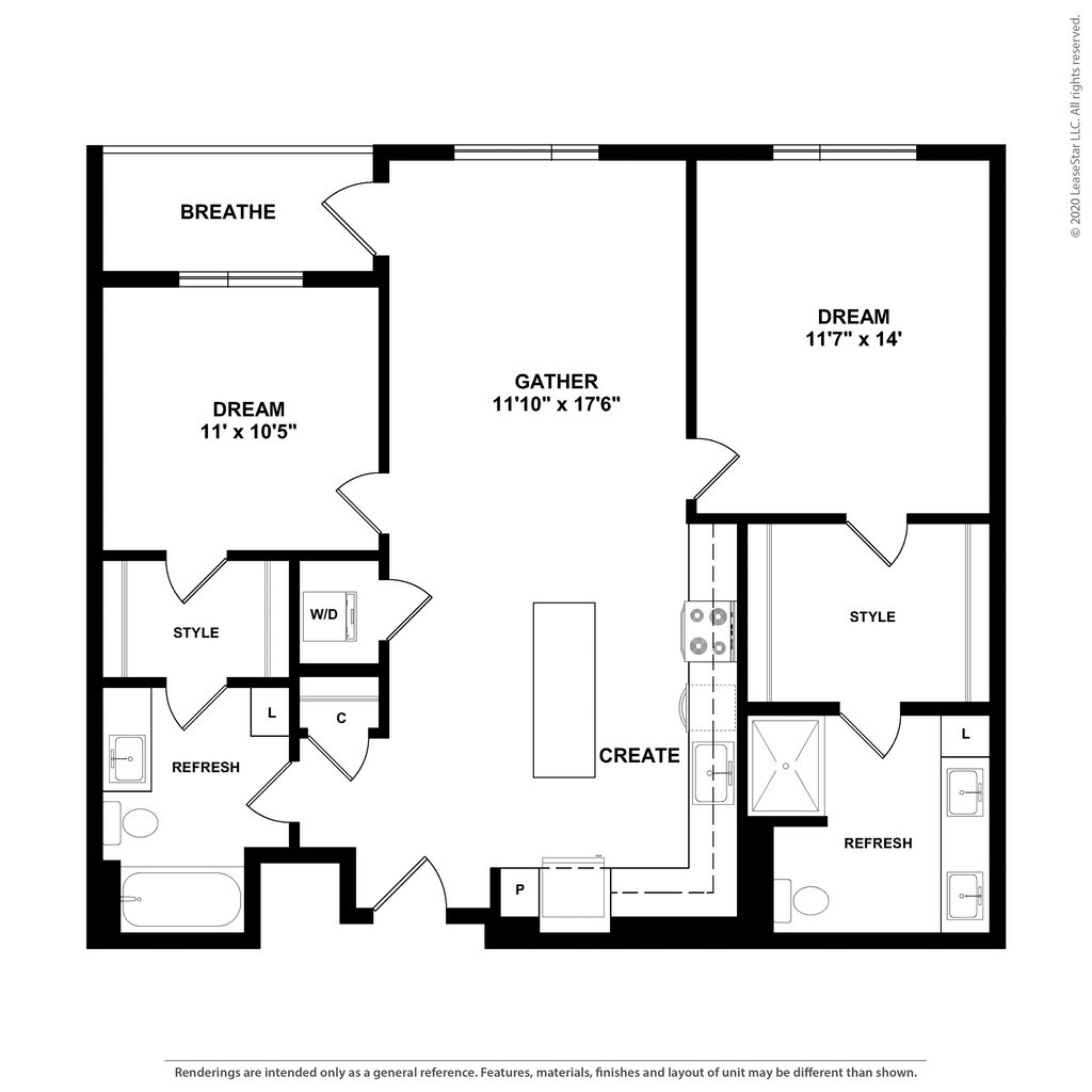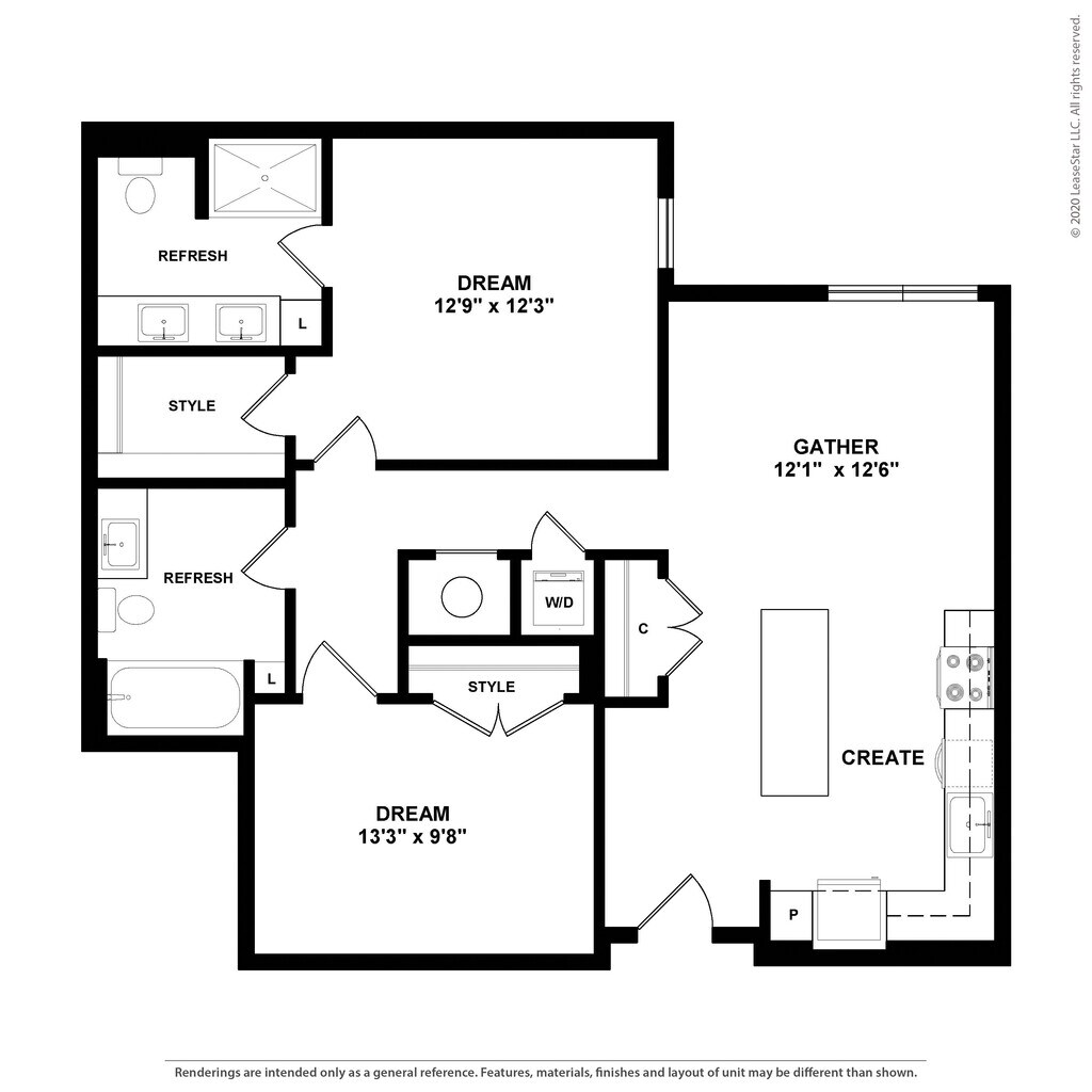 1 Dormitorio, 1 Baño, 679 pies²Disponible AhoraGalería del Modelo