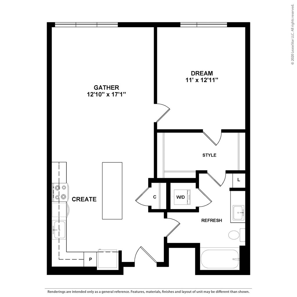 Estudio, 1 Baño, 616 pies²Disponible Apr 7Galería del Modelo