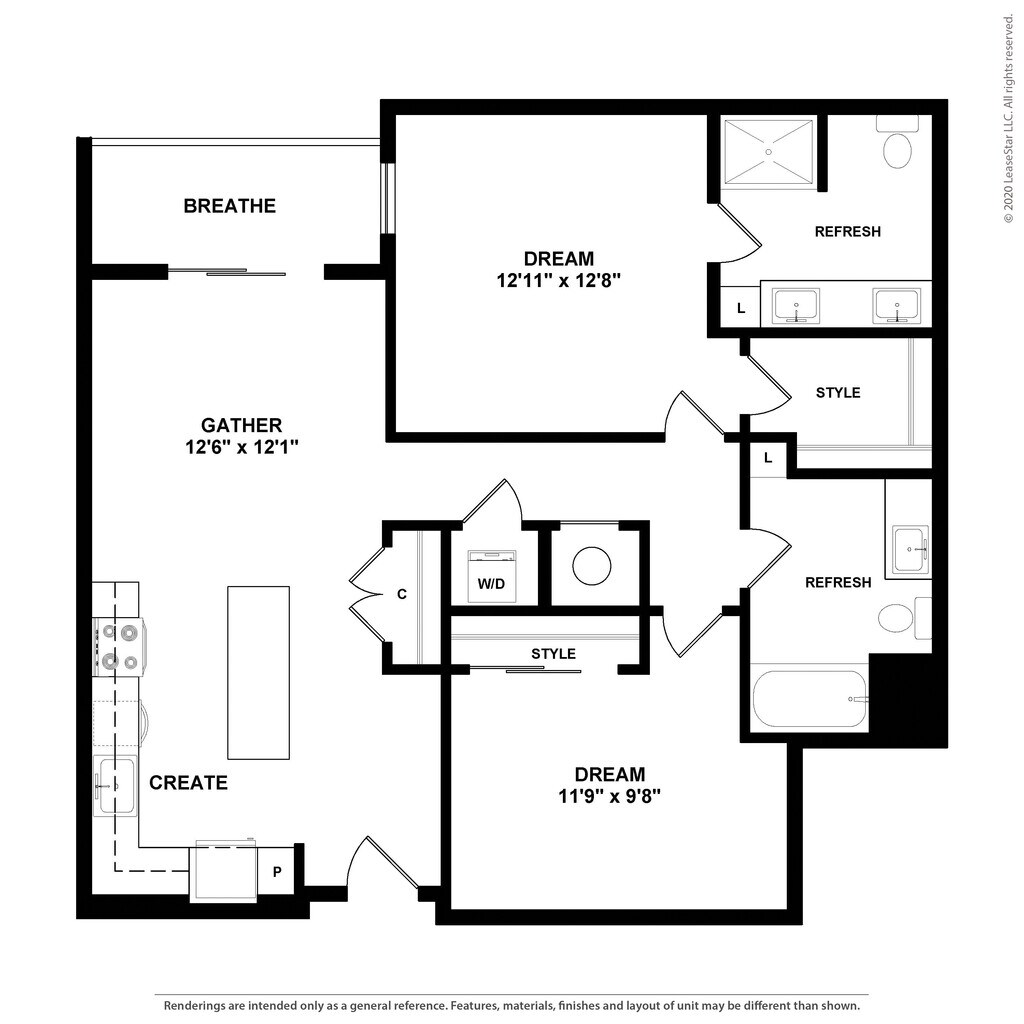 1 Dormitorio, 2 Baños, 1237 pies²Disponible AhoraEl más grandeEsta opción tiene las unidades más grandes para este modeloGalería del Modelo
