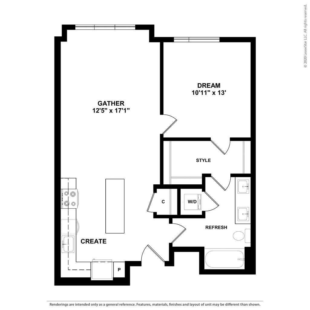 1 Dormitorio, 1 Baño, 737 pies²Disponible AhoraGalería del Modelo