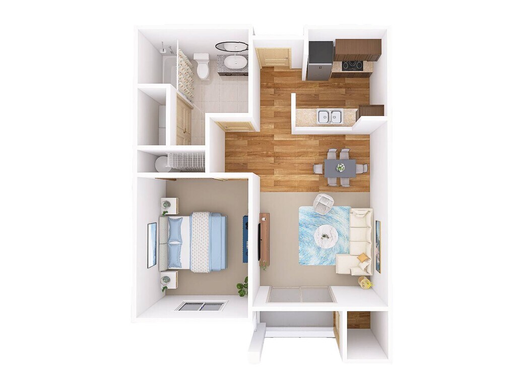 1 Dormitorio, 1 Baño, 703 pies²Disponible AhoraGalería del Modelo