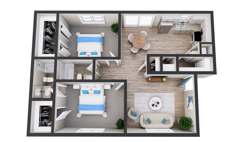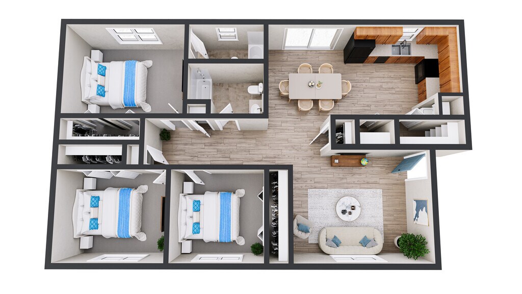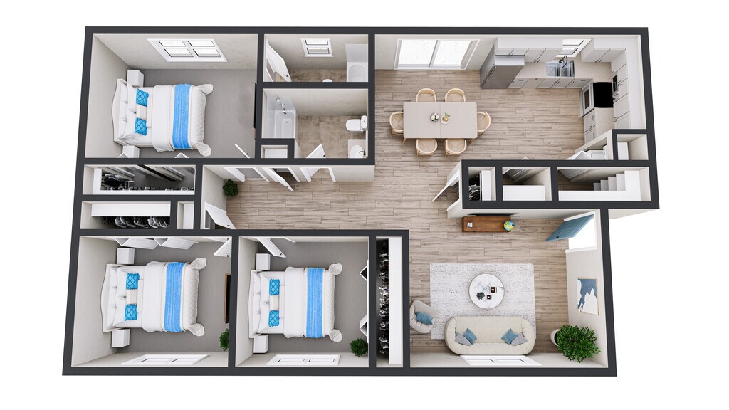 Modelo de apartamento: The DuneDesde $1,8153 Dormitorios, 2 Baños, 1123 sq ftDisponible Ahora![]()