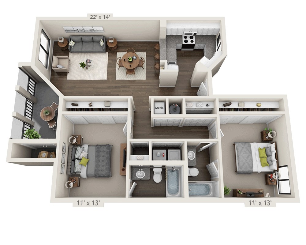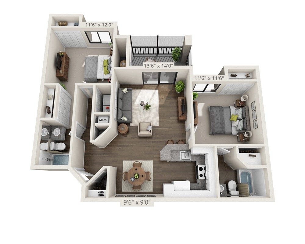 1 Dormitorio, 1 Baño, 629 pies²Disponible AhoraGalería del Modelo