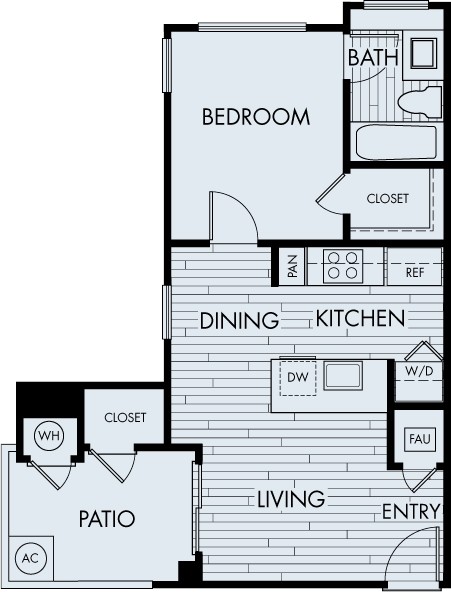 Modelo de apartamento: Plan 1ADesde $2,6301 Dormitorio, 1 Baño, 538 sq ftDisponible Ahora![]()