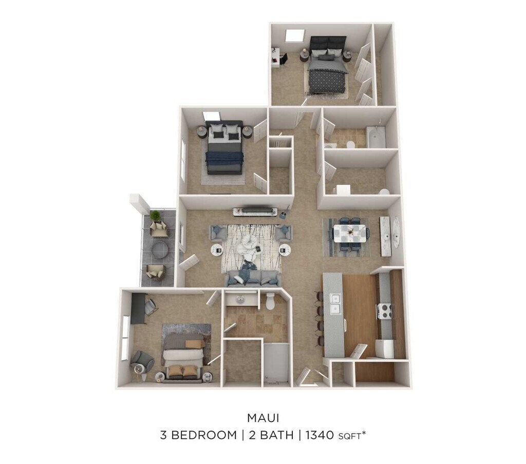 3 Dormitorios, 2 Baños, 1340 pies²Disponible AhoraGalería del Modelo