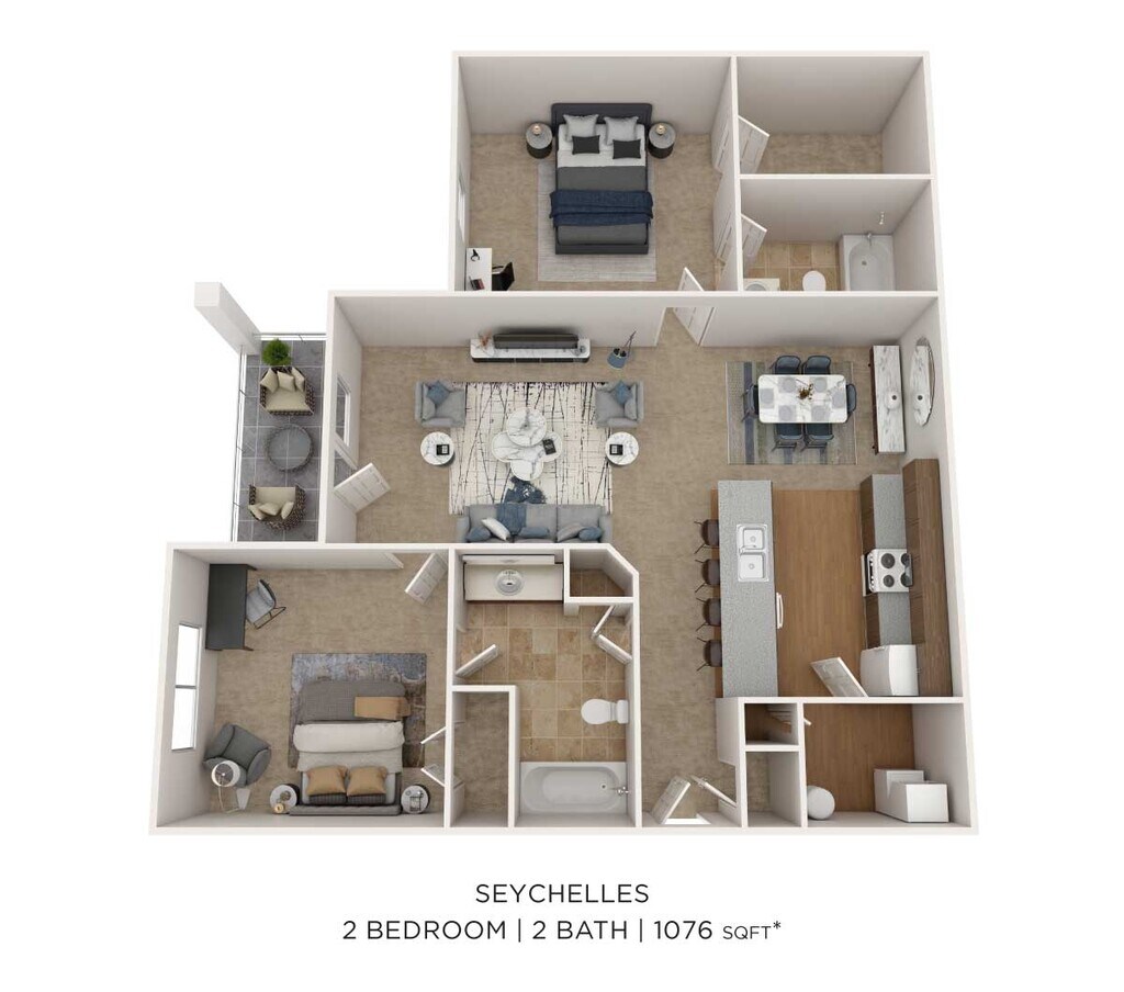 2 Dormitorios, 2 Baños, 1076-1139 pies²Disponible AhoraGalería del Modelo