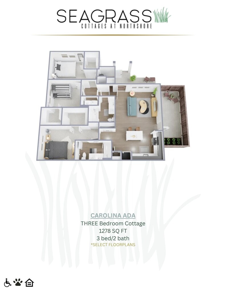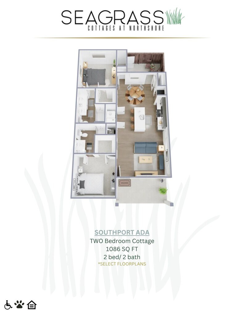 Seagrass Cottages at Northshore ofrece apartamentos de 1 a 3 Dormitorios desde $1,399 con 806–1,352 pies cuadrados. Aquí está el precio actual y la disponibilidad: