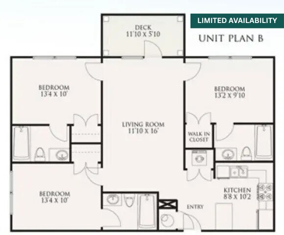 Modelo de apartamento: 3x3 DeluxeDesde $7553 Dormitorios, 3 Baños, 1000 sq ftDisponible Ahora![]()
