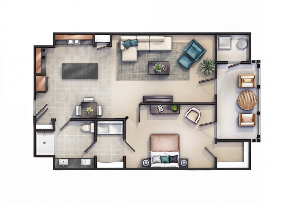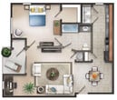 1 Dormitorio, 1 Baño, 840 pies²Disponible AhoraGalería del Modelo