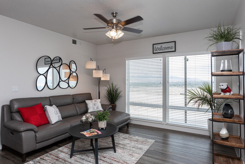 UNA UBICACIÓN IDEAL DE LA QUE NUNCA QUERRÁS IRTE. Recorrido virtual aquí - Hermosos e inteligentes apartamentos con amplias vistas de Salt Lake Valley. Ubicados en un punto intermedio entre el bullicio de la ciudad o una aventura al aire libre, a solo unos segundos de la I-15 y la autopista Bangerter. Nuestros residentes disfrutan de Internet de alta velocidad junto con tecnología Vivint Smart Home y servicios de estilo de centro turístico. Somos el hogar perfecto para ti y tus amigos peludos.