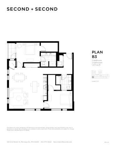 B3 - Plano 1 Unidad de apartamento: 519Modelo de apartamento: B3$2,7892 Dormitorios, 2 Baños, 1371 sq ftDisponible AhoraPlano: B5s