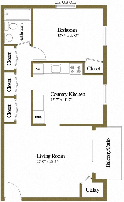 1 Bedroom 1 Bath - Plano 1 ![]()