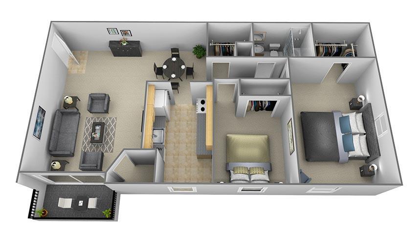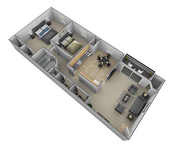 2 Dormitorios, 1 Baño, 894 pies²Disponible AhoraGalería del Modelo