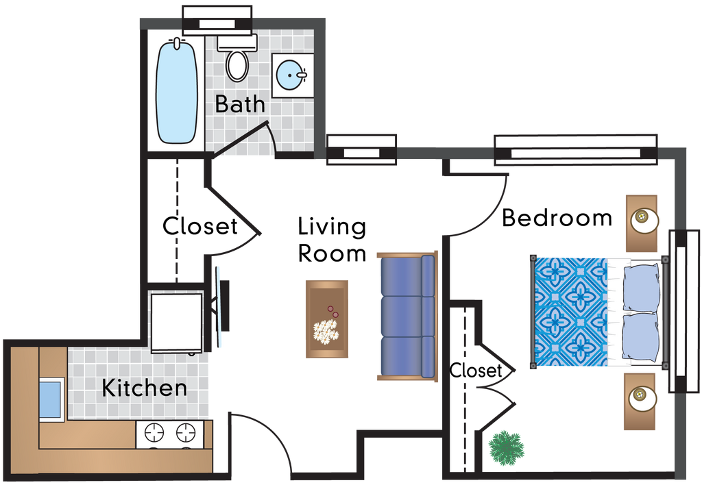 Estudio, 1 Baño, 518 pies²Disponible AhoraGalería del Modelo